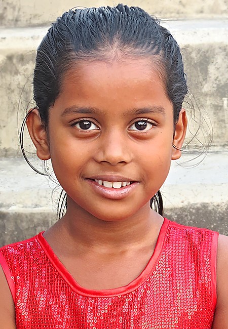 Moumita a 9 ans, c'est la soeur de Minakshi. Elle est en Classe IV. Pour les mêmes raisons, et tout comme sa soeur, l'association finance les frais d'admission, les cours du soir, le matériel scolaire et le médical si besoin. En 2024, souffrant de carences diverses et d'un retard de croissance, elle a bénéficié d'un apport alimentaire.