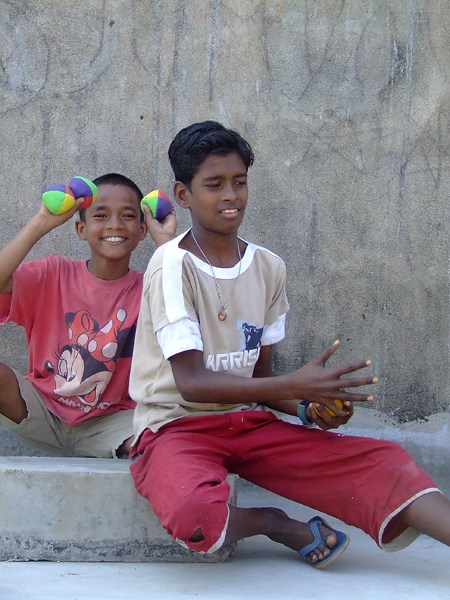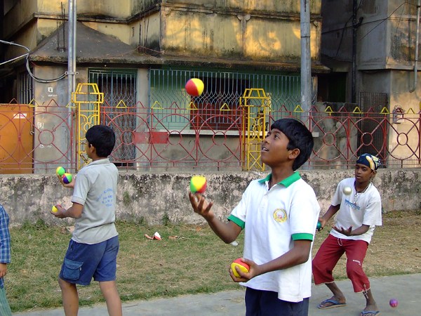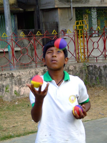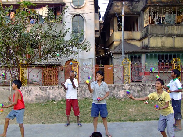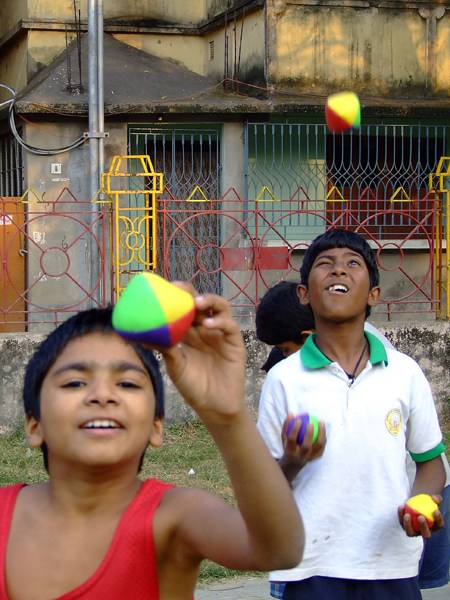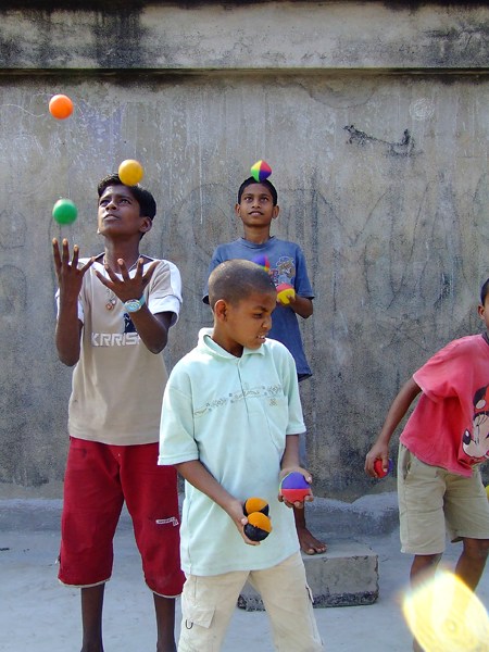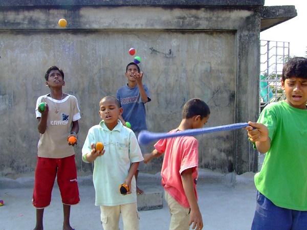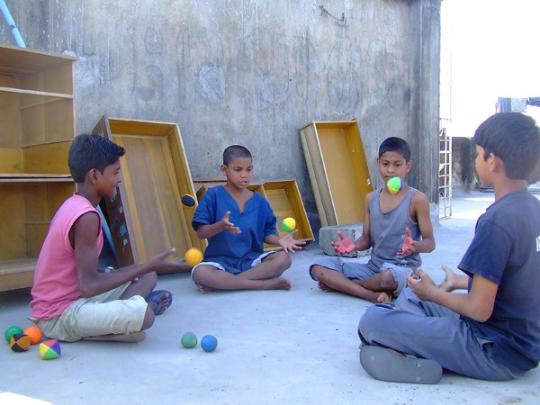 En début d'année 2007, Ségolène nous propose un atelier jonglage pour quelques mois. Beaucoup de nos garçons sont intéressés et une fois par semaine, ils s'essayent au jonglage, la plupart d'entre eux pour la première fois.