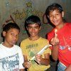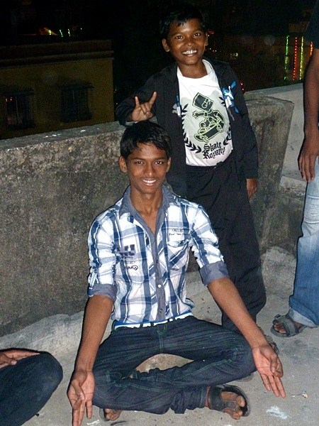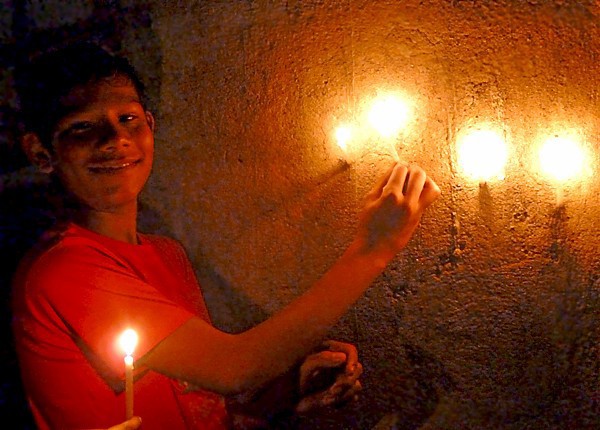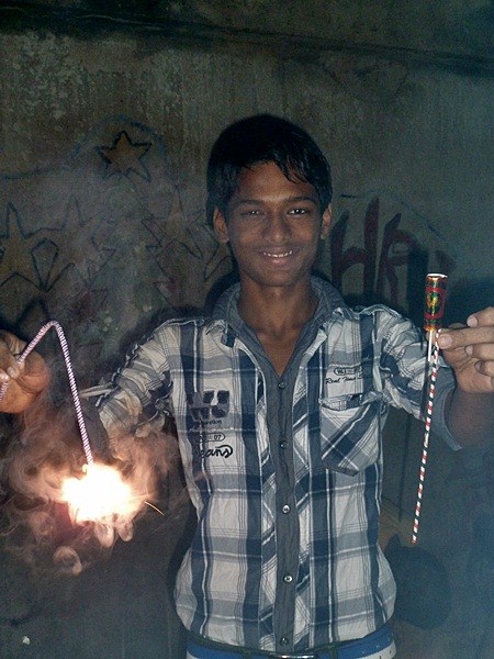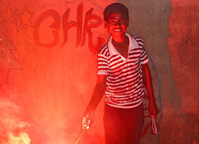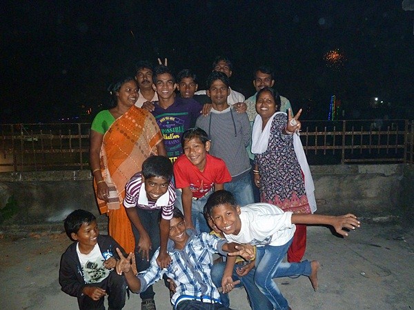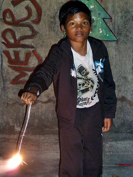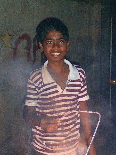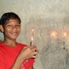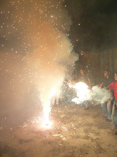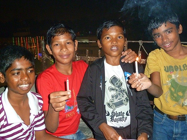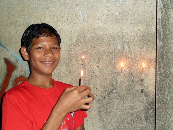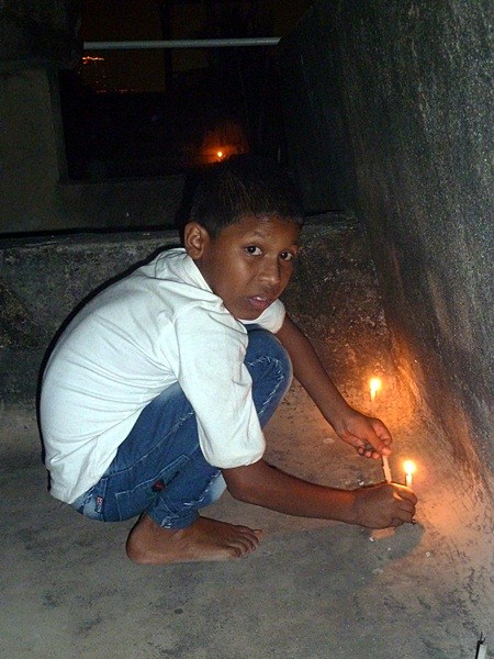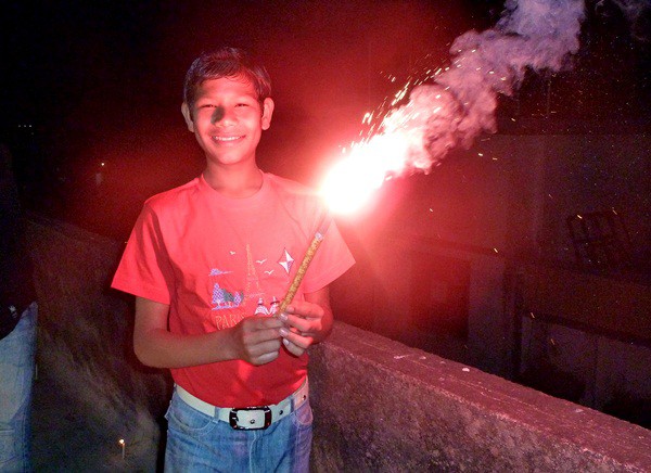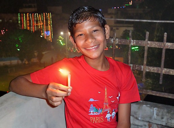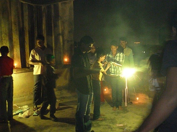 Les garçons des foyers montent sur la terrasse et participent au festival en disposant des bougies tout autour de la maison et en faisant exploser les pétards...