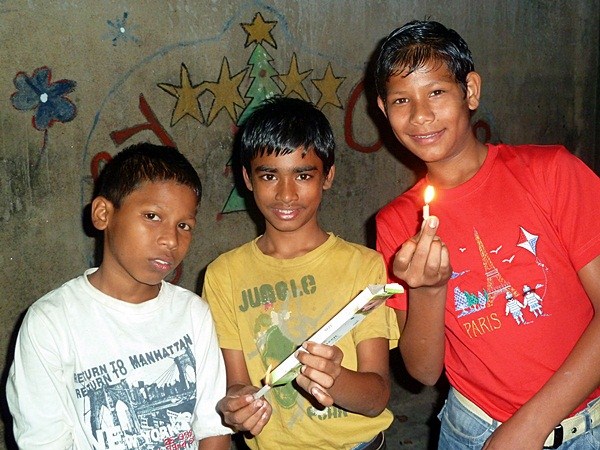 Le célèbre festival « Diwali » est la fête des lumières. Les maisons sont illuminées par des bougies ou des guirlandes électriques et tout le monde s'amuse avec des pétards.