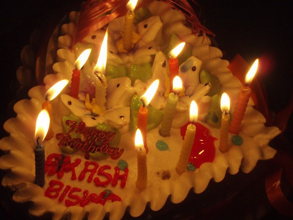 Sanjit essaye de souffler ses bougies mais elles se rallument aussitôt ! janvier 2012