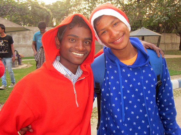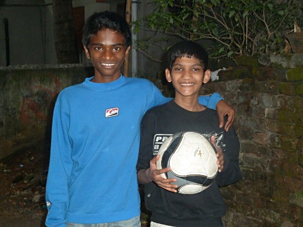 Wahid et Biswajit après un match de foot, décembre 2012