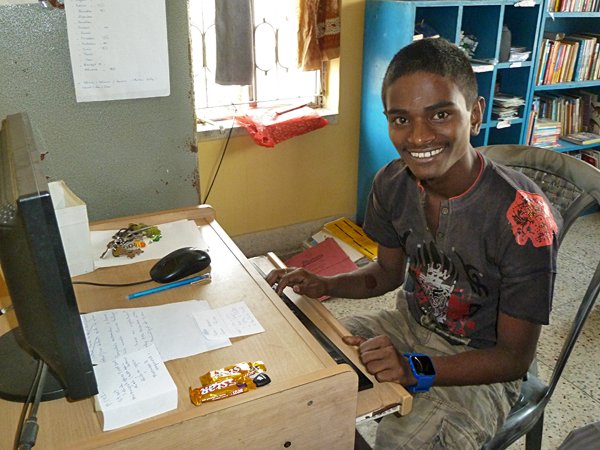 Wahid et Rabi à l'ordinateur, décembre 2016