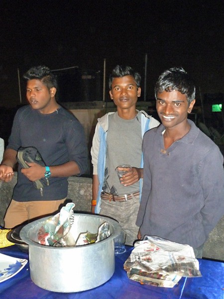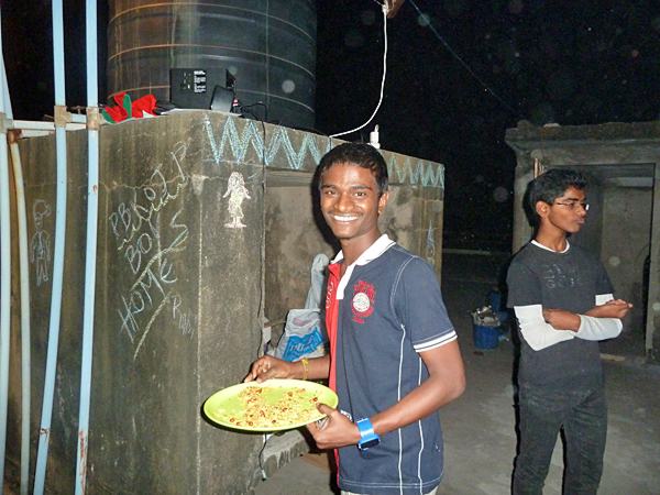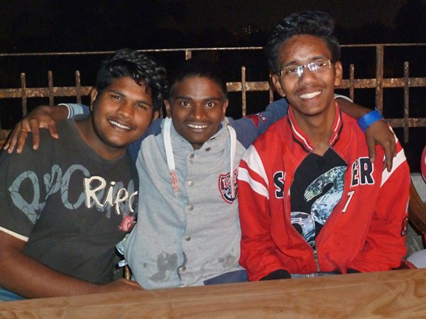 Wahid avec Sourav et Subhajit, lors de la soirée anniversaires, décembre 2016