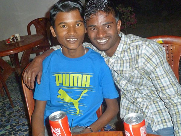 Wahid et Sanatan II, invités pour des snacks avant d'aller au cinéma, février 2017
