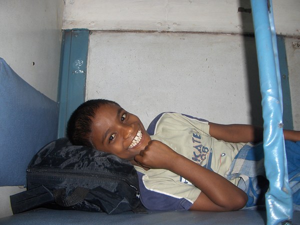 Wahid dans le train direction la mer, mars 2008